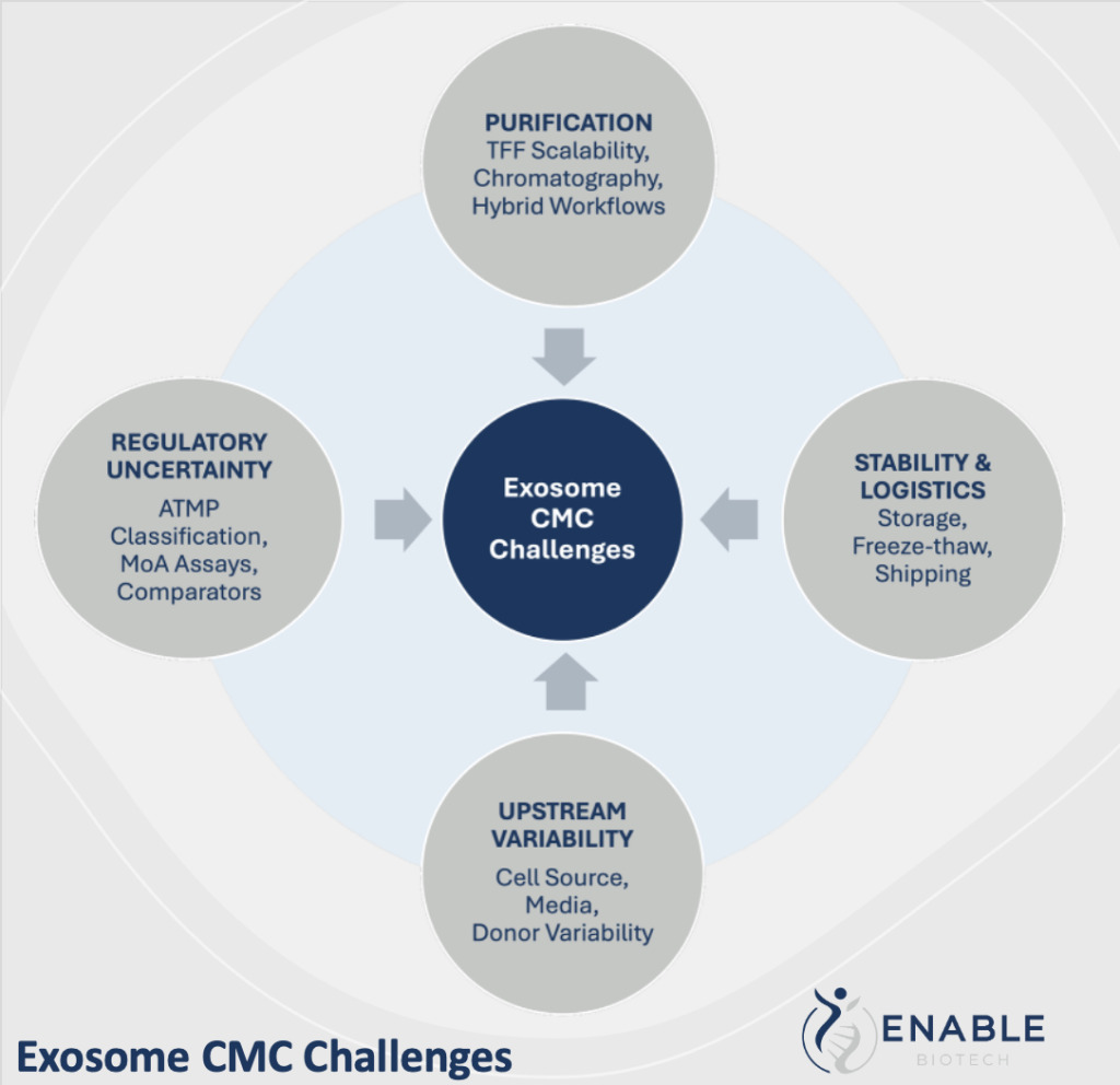 Like other complex biologics, exosomes are profoundly shaped by their source cells, culture conditions, and isolation methods. These dependencies make consistency, scalability, and regulatory alignment the critical barriers standing between today’s scientific promise and tomorrow’s approved products. For innovators advancing exosome therapies, partnering with a CDMO that understands these nuances is essential.